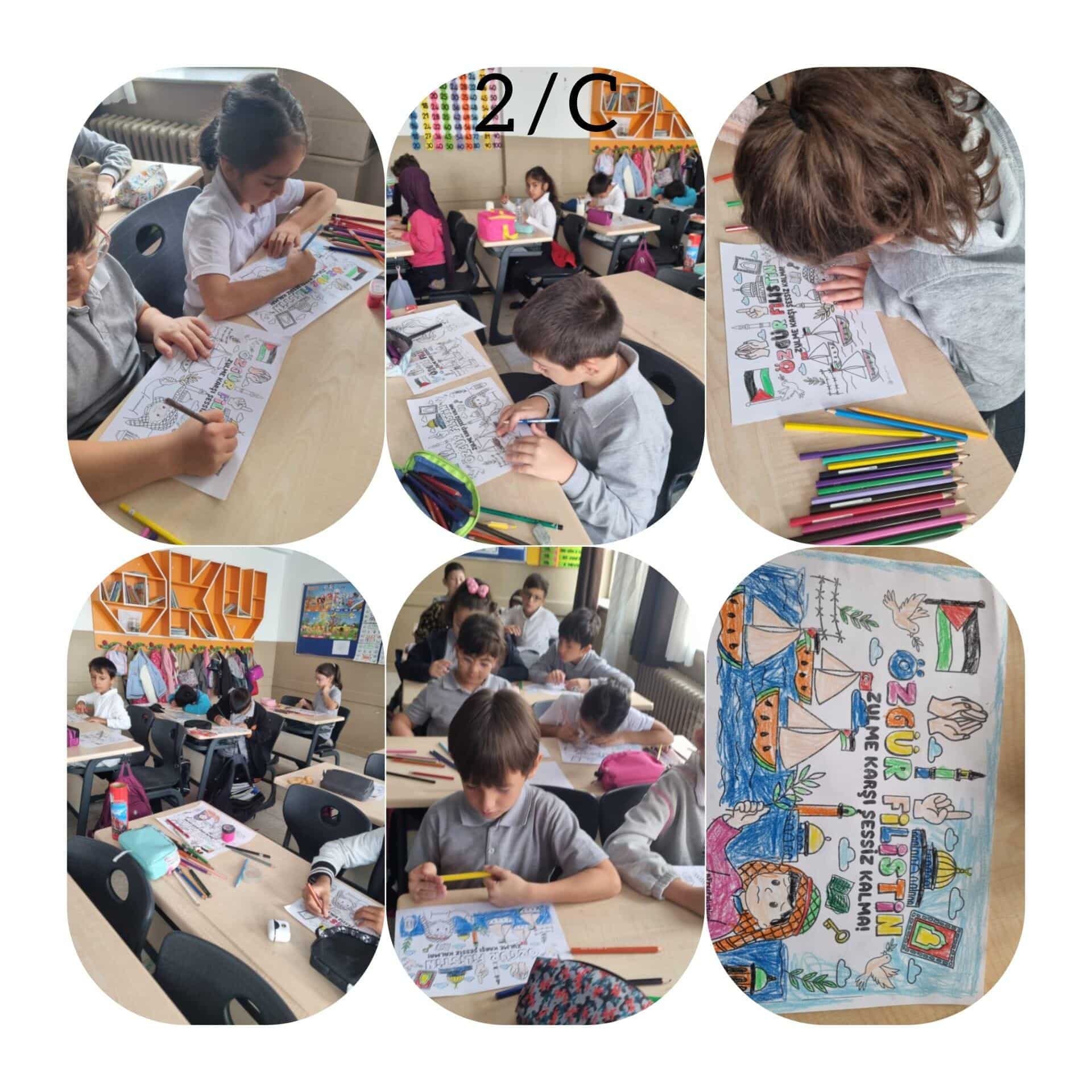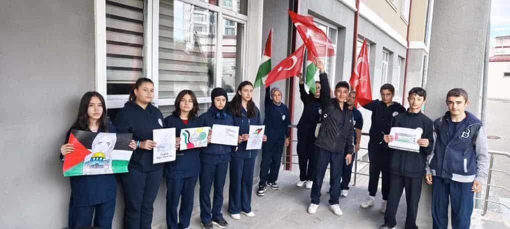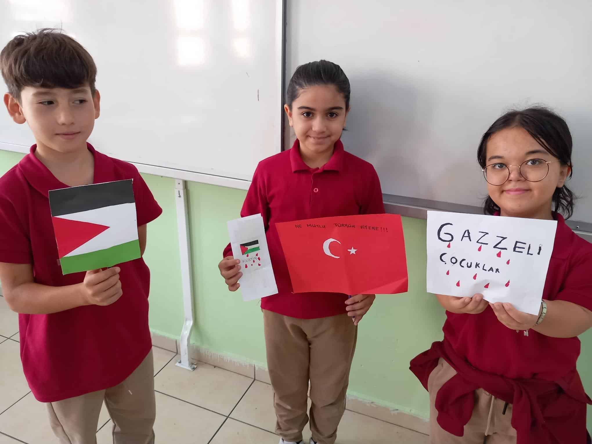 Bugün, ilçemizdeki tüm okullarımızda eşzamanlı olarak öğrencilerimizin katılımıyla Filistin ve Gazze temalı farkındalık etkinlikleri düzenlendi.